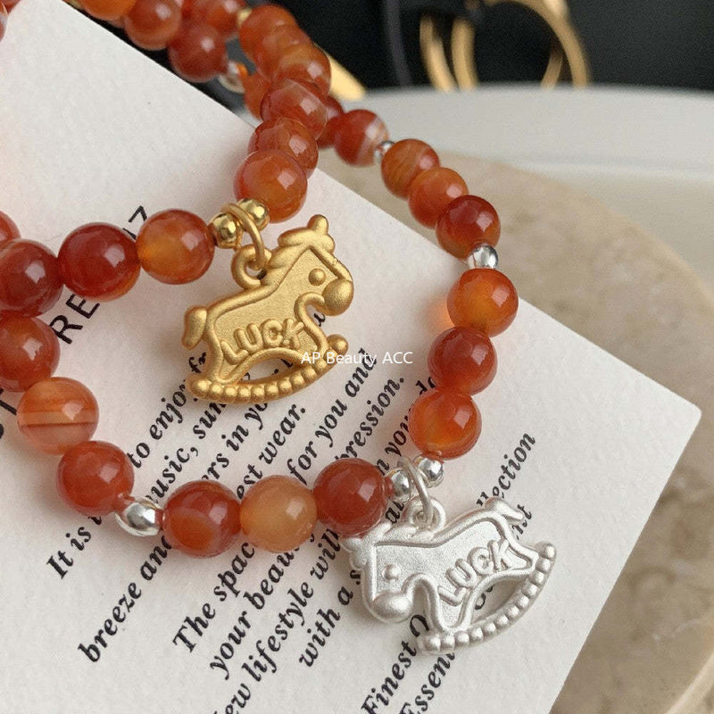 A관 - 925 실버 luck 말 홍마노 미니 비즈 팔찌 [1652] 25.12-3