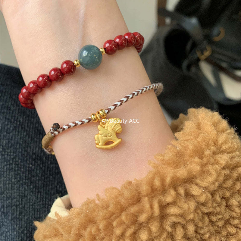 A관 - 귀여운 말 네잎클로버 천연 자금사 비즈 팔찌 [1638] 25.12-3
