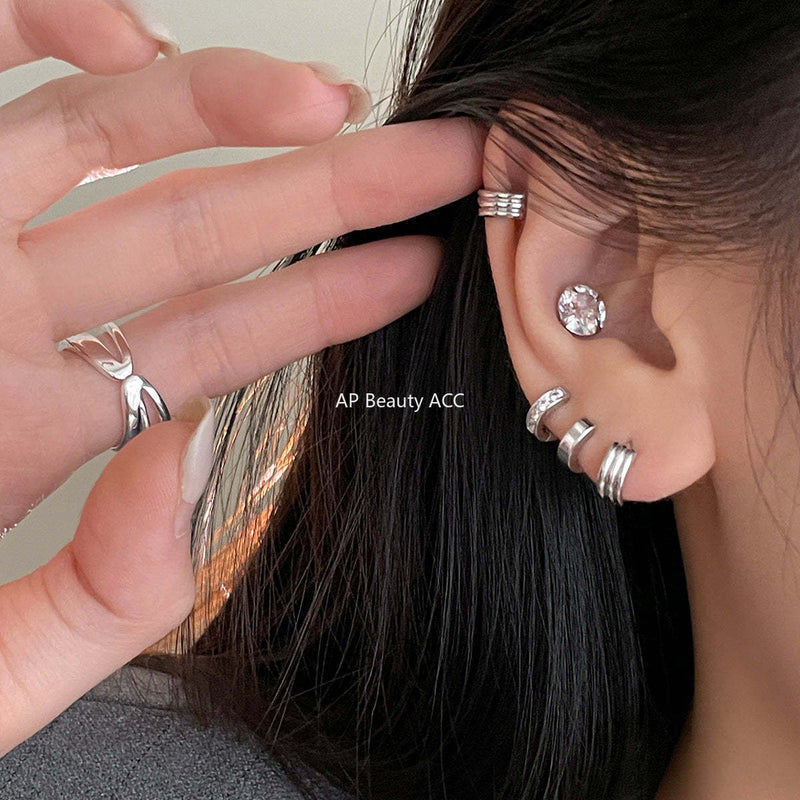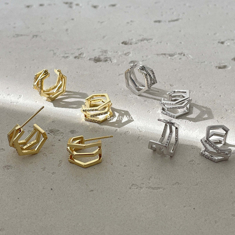 A관 - 멀티 레이어 큐빅 925 은침 스터드 이어커프 귀걸이 [EH-4292] 25.12-3