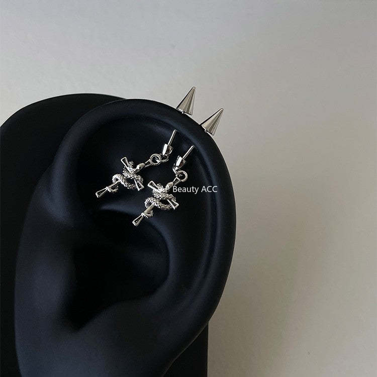 A관 - 꼬임 스네이크 십자가 티타늄 스틸 피어싱 귀걸이 [EH-4346] 25.12-3