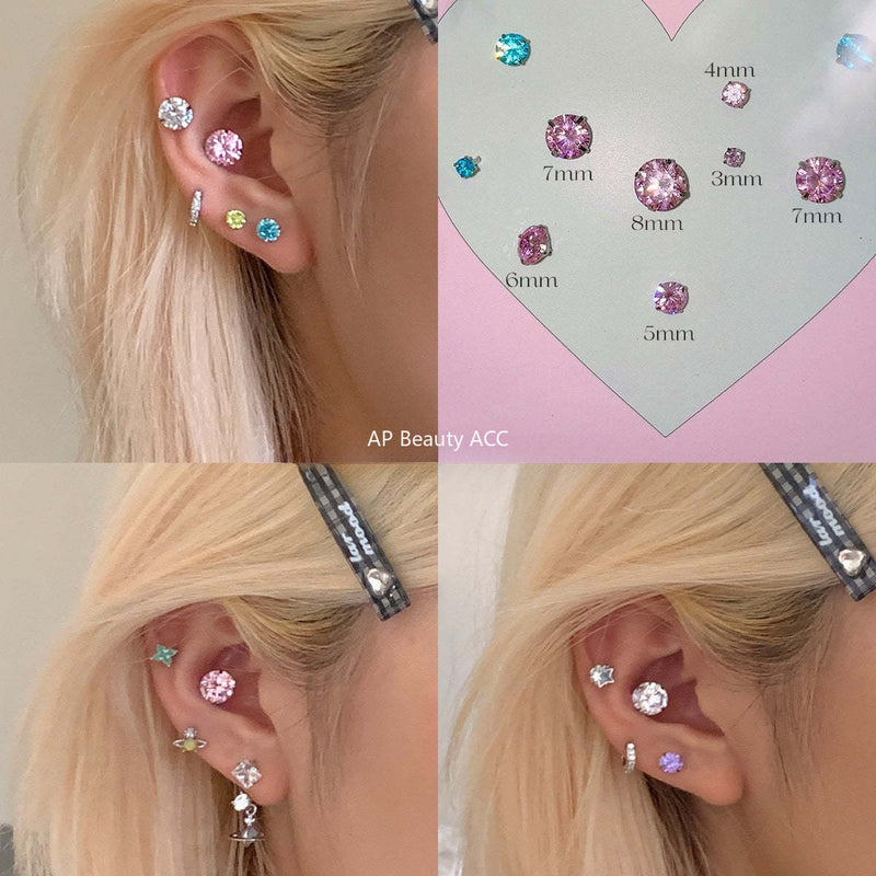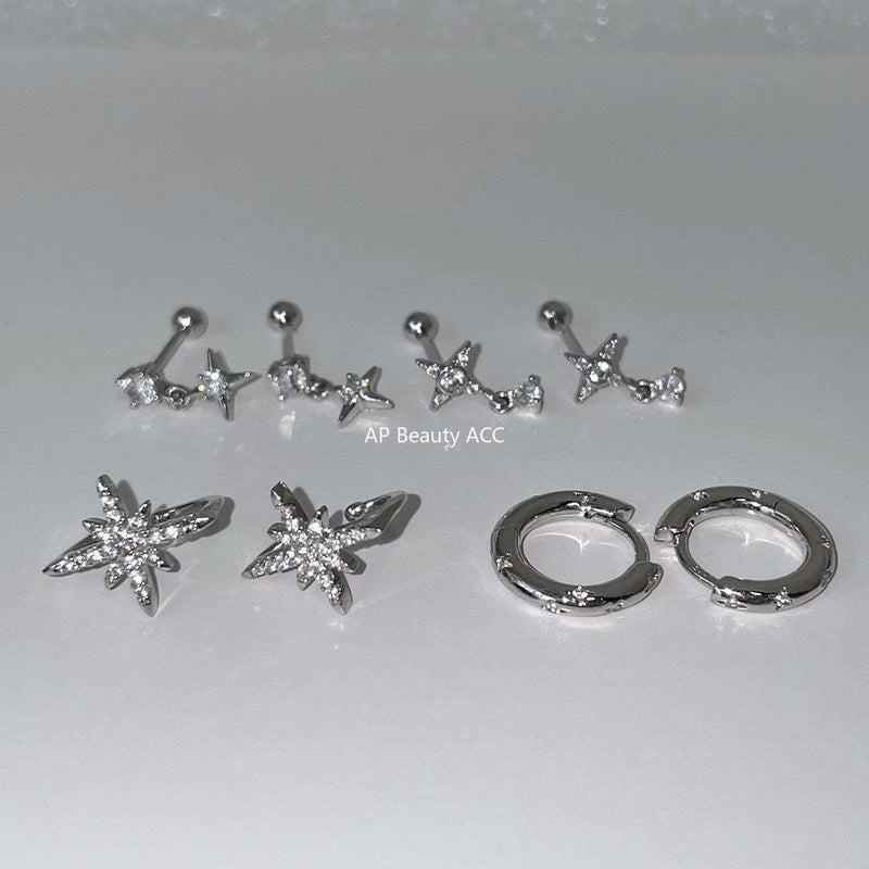 A관 - 925 은침 사각별 큐빅 피어싱 링 귀걸이 [EH-3972] 25.10-5