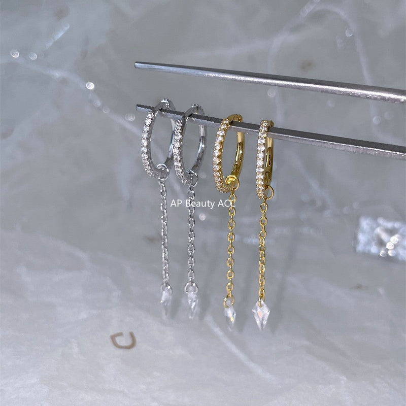 A관 - 925 은침 마름모 드롭 큐빅 디자인 귀걸이 [EH-4181] 25.10-3