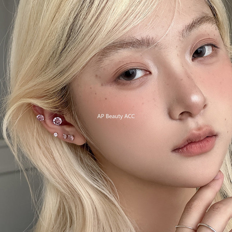 A관 - 999 실버 핑크 큐빅 스터드 귀걸이 [EH-4094] 25.10-2