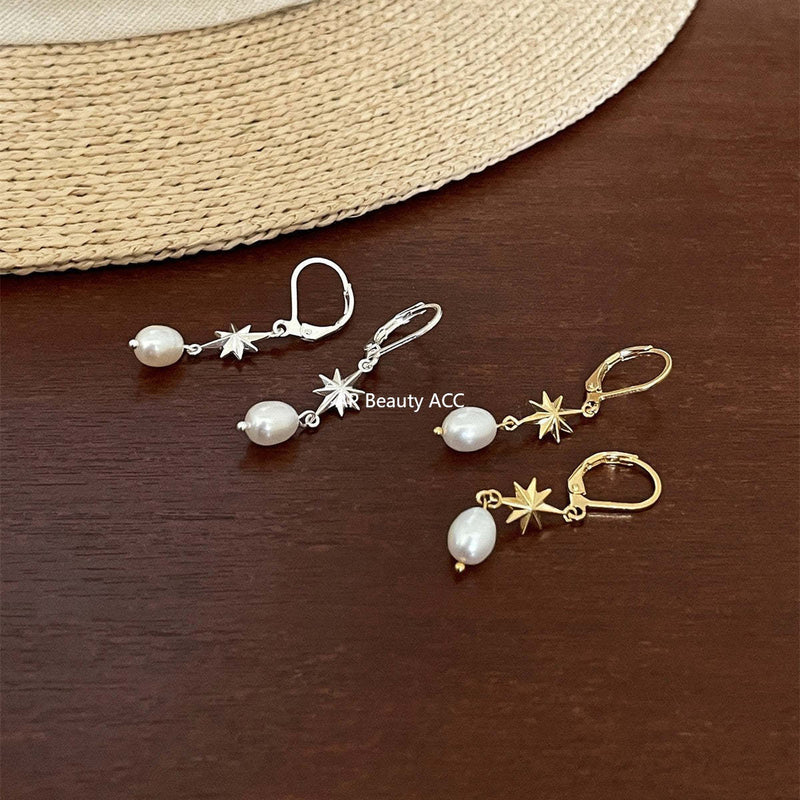 A관 - 925 은침 팔각별 진주 드롭 귀걸이 [EH-4000] 25.10-2