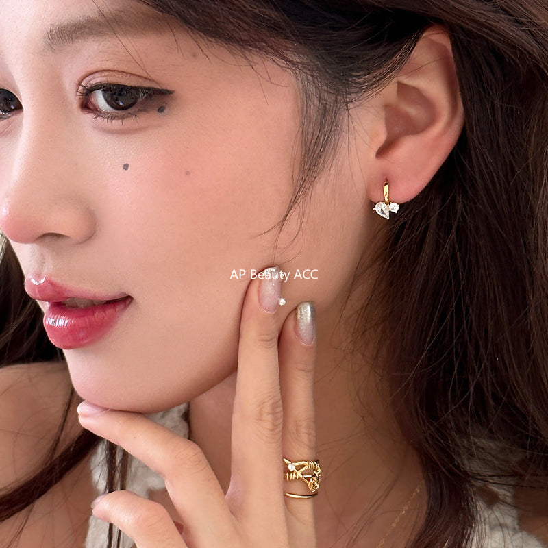 A관 - 925 은침 물방울 큐빅 링 귀걸이 [EH-4001] 25.10-1