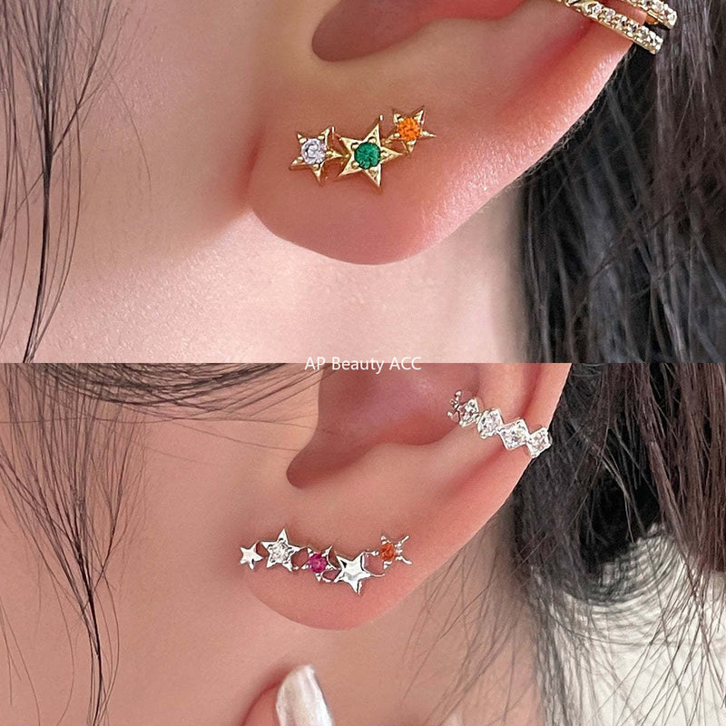 A관 - 925 은침 컬러 큐빅 별 귀걸이 [EH-4028] 25.10-2