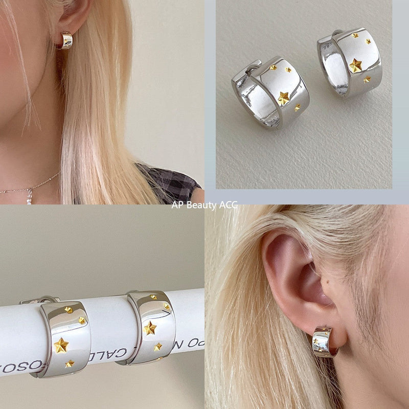 A관 - 925 은침 투톤 별 와이드 링 귀걸이 [EH-4166] 25.10-2