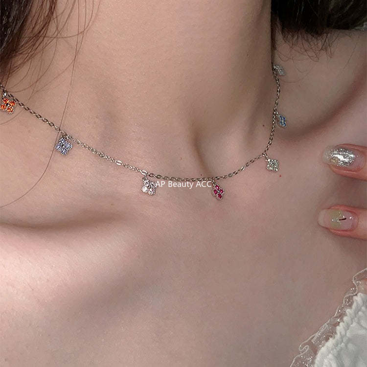 A관 - 네잎클로버 모양 컬러 큐빅 펜던트 목걸이 [XL-1214] 25.12-2