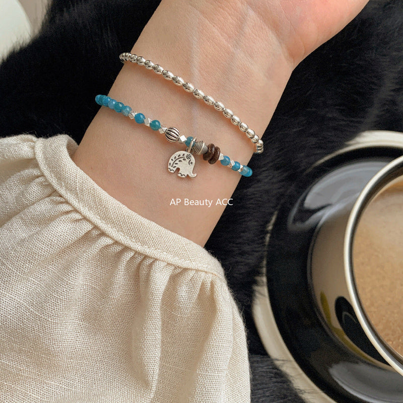 A관 - 925 실버 핸드메이드 코끼리 펜던트 아파타이트 팔찌 목걸이 [1545] 25.11-2