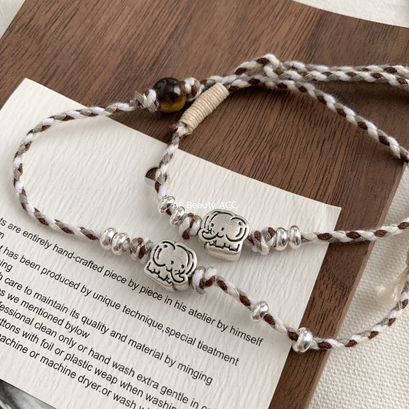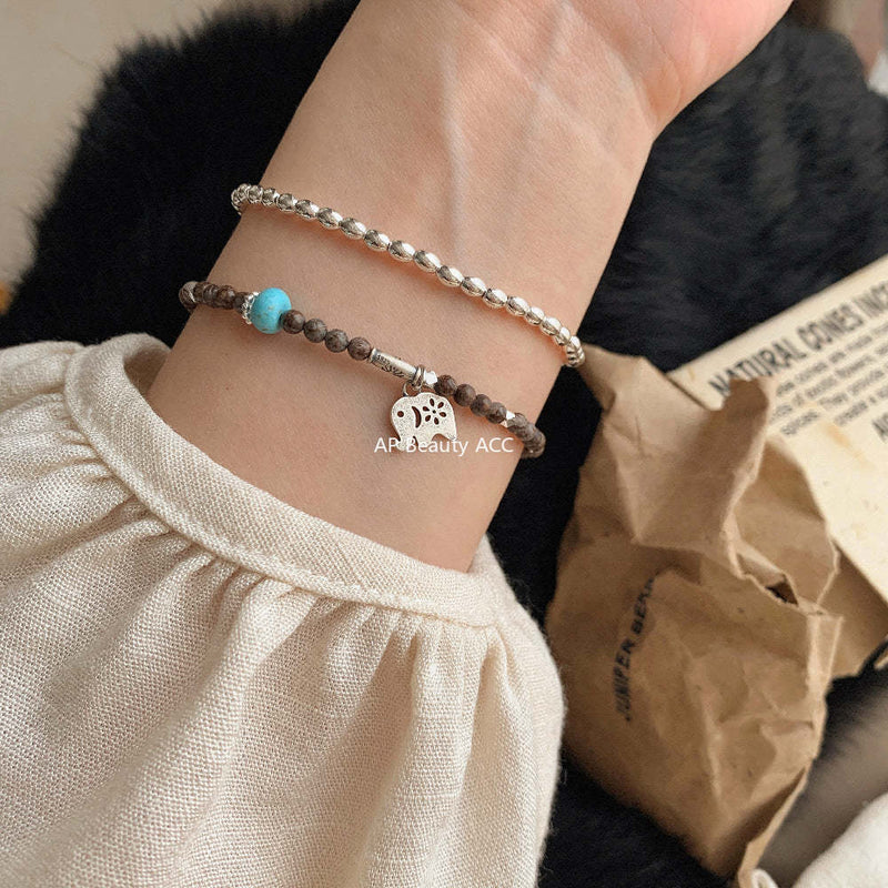A관 - 925 실버 코끼리 핸드메이드 비즈 스트랩 팔찌 목걸이 [1608] 25.11-2