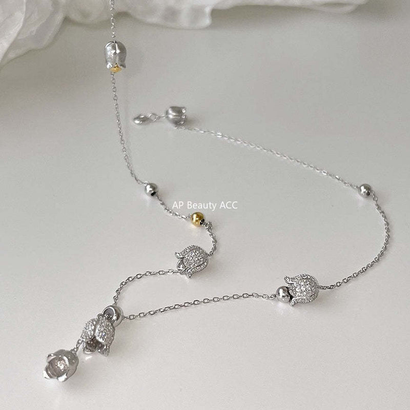 A관 - 꽃봉오리 플라워 모양 큐빅 목걸이 [XL-1220] 25.12-1