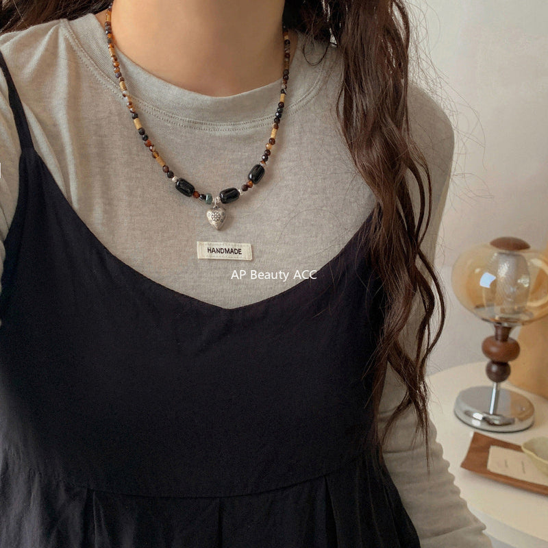 A관 - 925 실버 비즈 하트 플라워 펜던트 천연석 핸드메이드 목걸이 [1607] 25.11-2