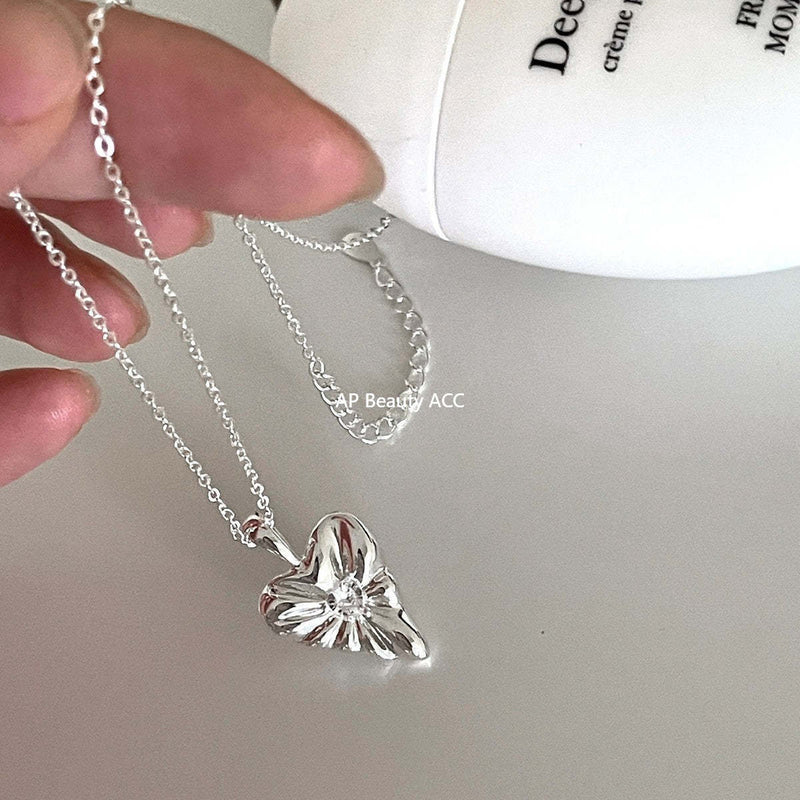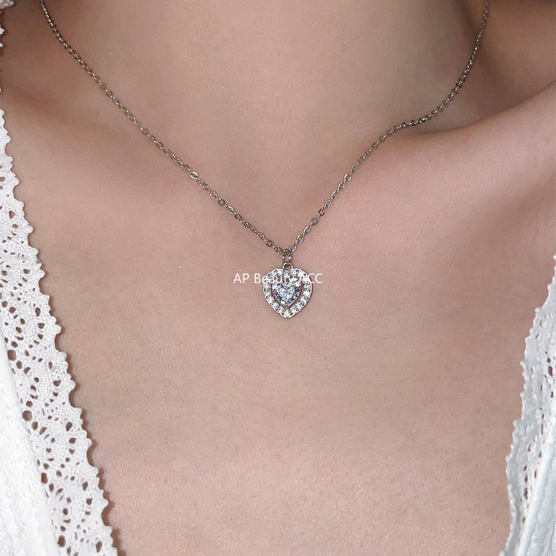 A관 - 925 실버 하트 큐빅 펜던트 목걸이 [XL-1206] 25.10-1