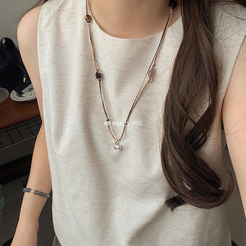 A관 - 925 실버 조랑말 펜던트 왁스끈 목걸이 [518] 25.10-2