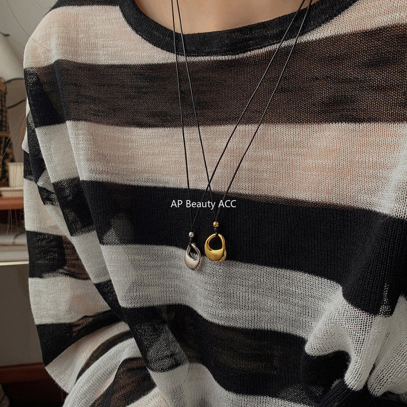 A관 - 925 실버 샌딩 스마일 튜브 왁스끈 목걸이 [1357-1358] 25.10-2