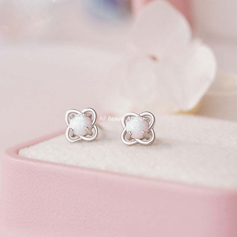 B관 - 999 실버 오팔 클로버 디자인 스터드 귀걸이 [YC7755E_1] 25.10-4
