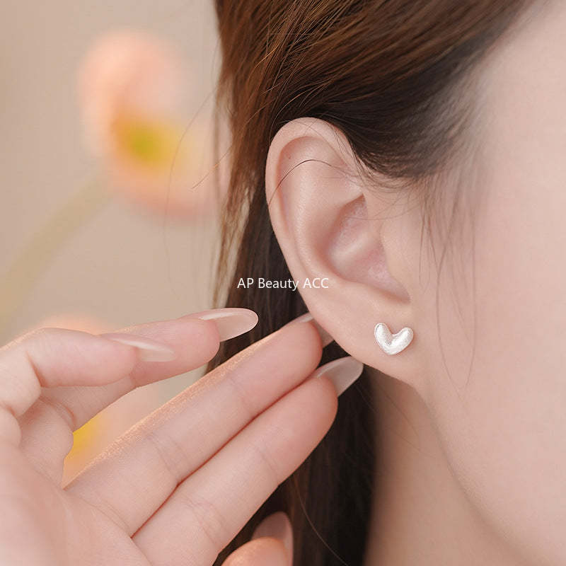 B관 - 999 실버 샌딩 하트 디자인 귀걸이 [YC8923E_1] 25.10-4