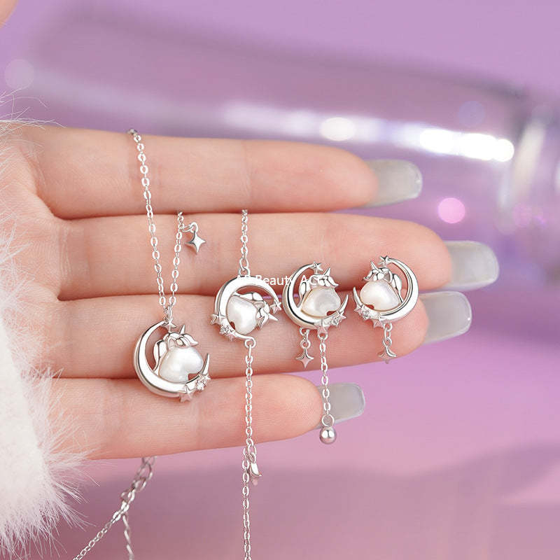 B관 - 999 실버 유니콘 달 디자인 목걸이 귀걸이 팔찌 [YC2200N_1 YC4829E_1 YC5416SL_1] 25.10-1