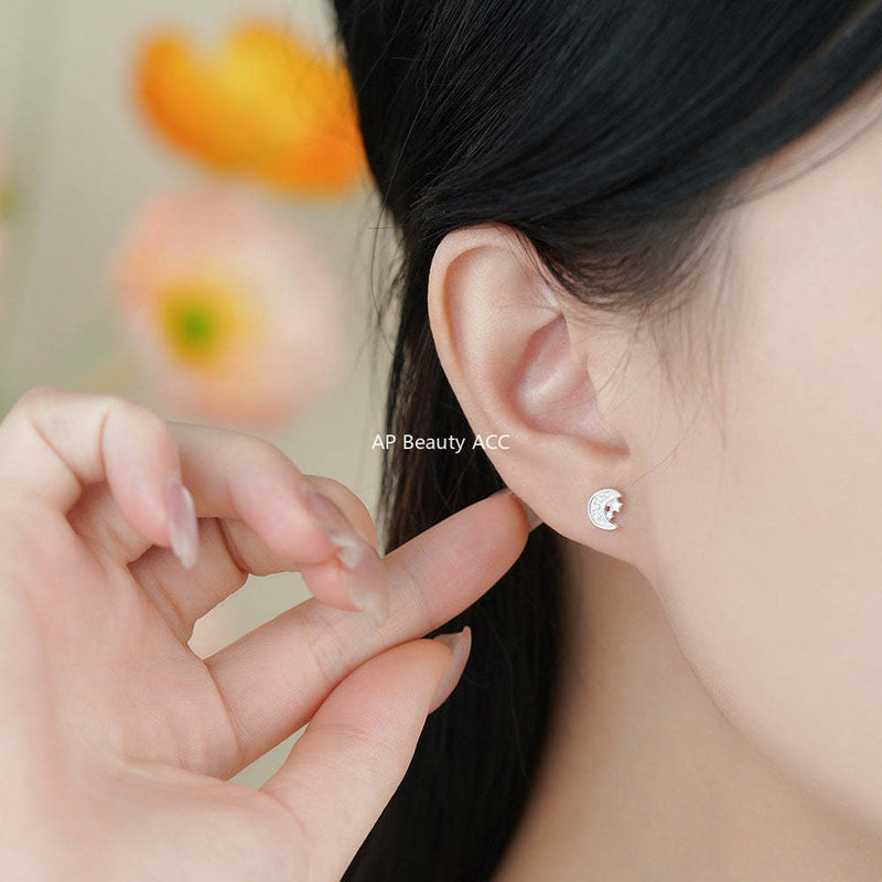 B관 - 999 실버 달 별 모양 큐빅 귀걸이 [YC4183E_1] 25.12-1