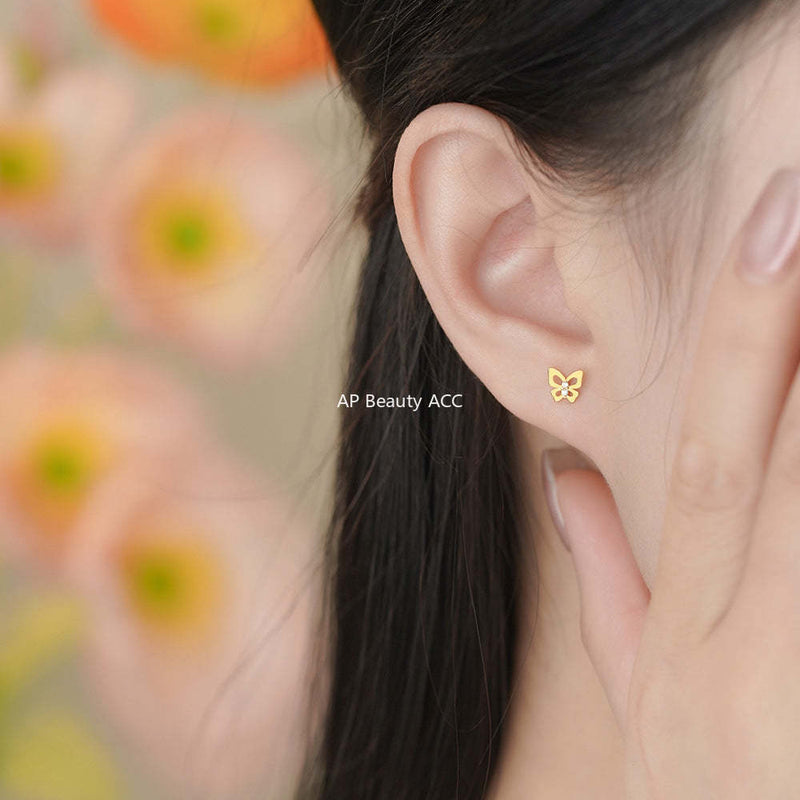 B관 - 999 실버 나비 모양 큐빅 귀걸이 [YC9489E_1] 25.12-1