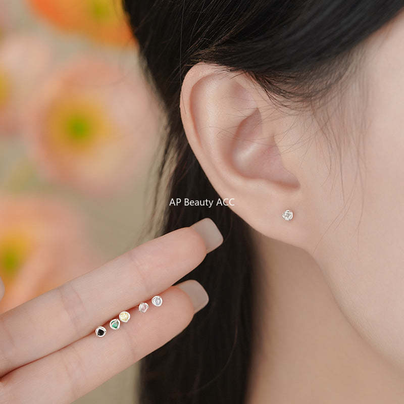 B관 - 999 실버 컬러 큐빅 스터드 귀걸이 [YC10043E] 25.12-1