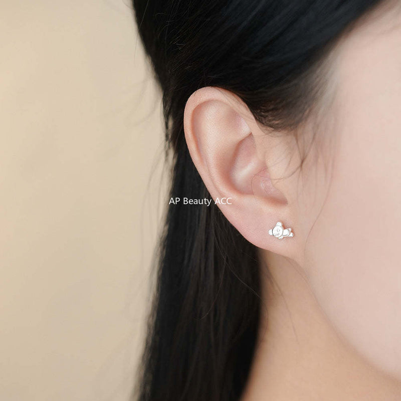 B관 - 999 실버 곰 밀크티 모양 피어싱 귀걸이 [YC9310E_1] 25.11-4