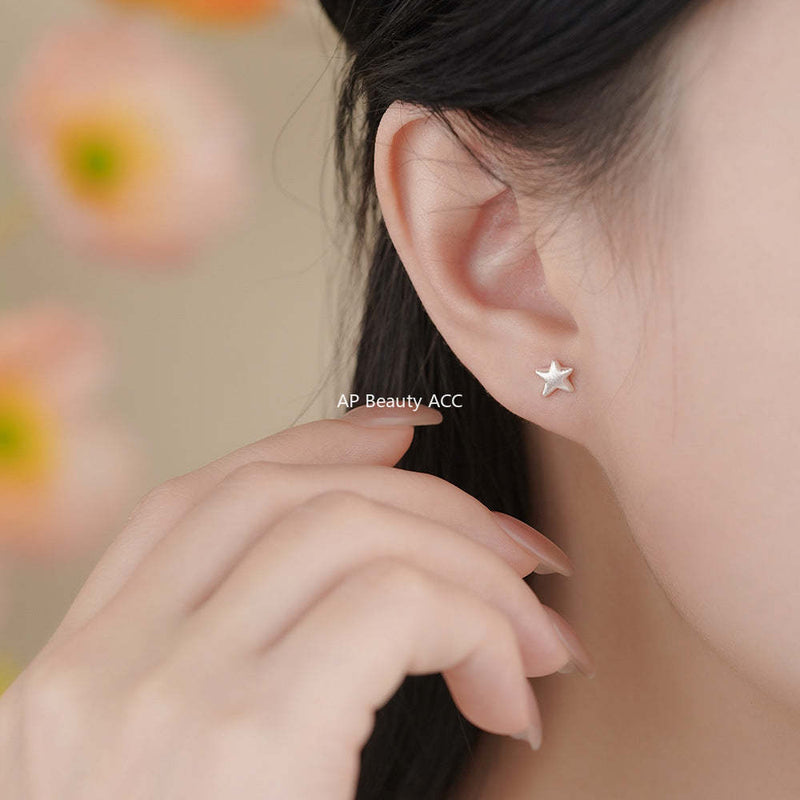 B관 - 999 실버 샌딩 불규칙 별 모양 귀걸이 [YC3448E_1] 25.11-4