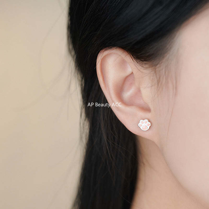 B관 - 999 실버 고양이 발바닥 모양 귀걸이 [YC3004E_1] 25.11-3