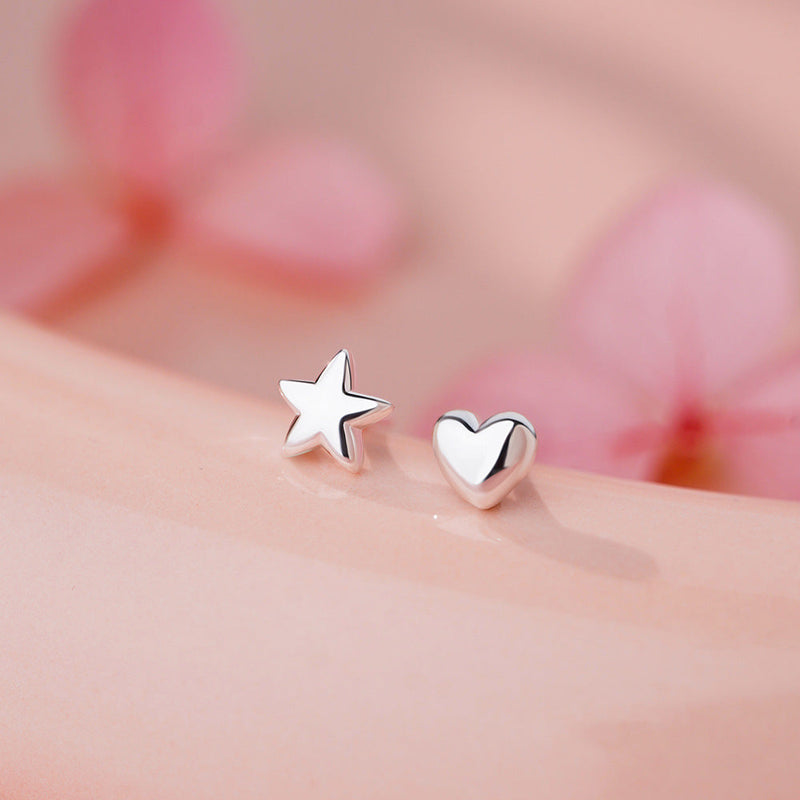 B관 - 999 실버 언밸런스 하트 별 디자인 귀걸이 [YC9001E_1] 25.11-4