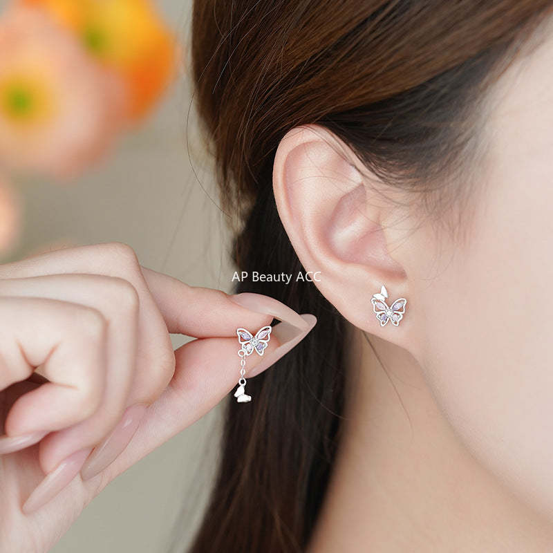 B관 - 999 실버 나비 태슬 플라워 큐빅 디자인 귀걸이 [YC3467E_1] 25.11-3