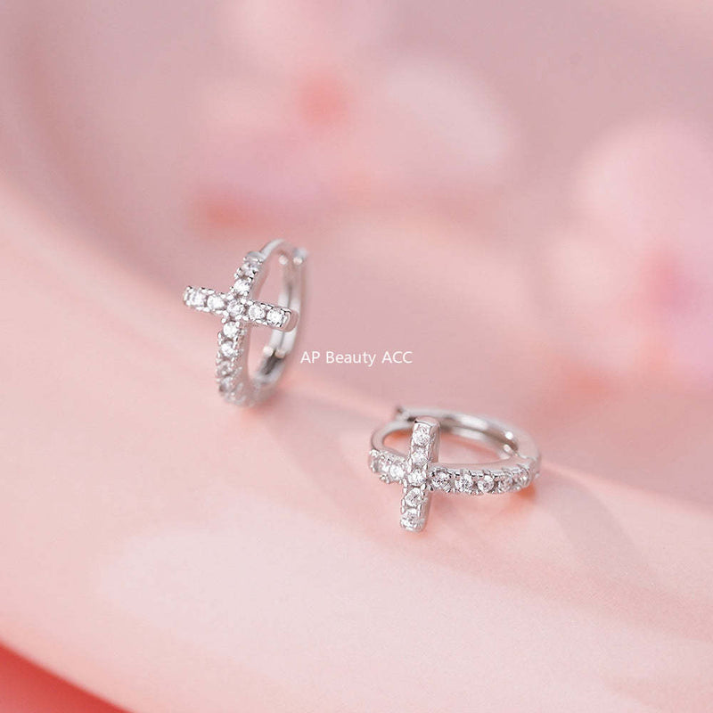 B관 - 999 실버 크로스 십자가 후프 귀걸이 [YC7384E_1] 25.11-4
