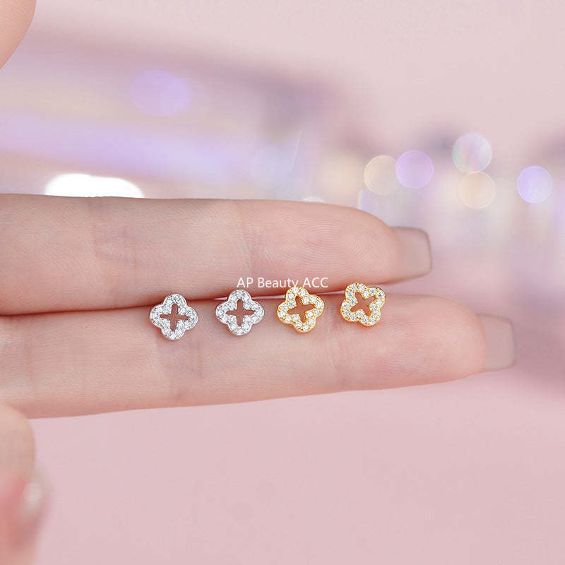 B관 - 999 실버 네잎클로버 디자인 큐빅 귀걸이 [YC7533E] 25.11-3