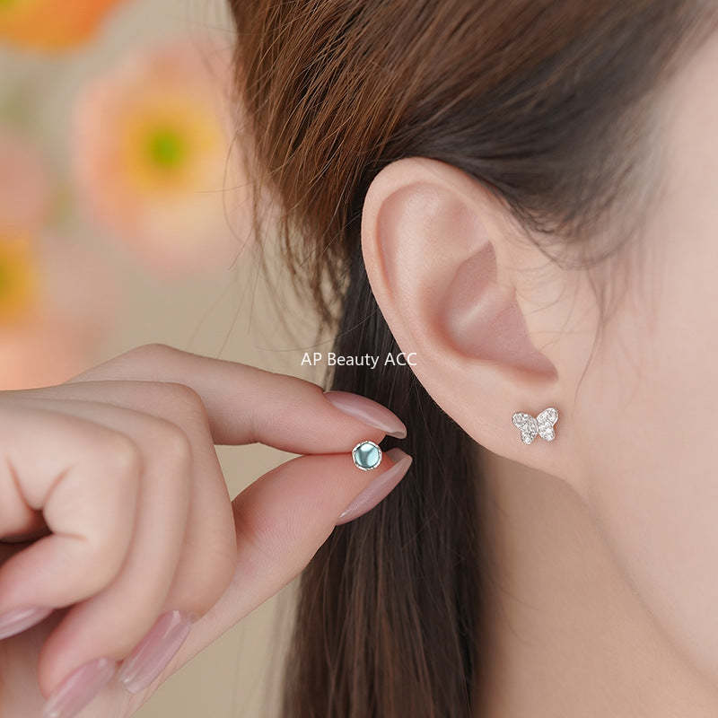 B관 - 언밸런스 나비 블루 999 실버 귀걸이 [YC4162E_1] 25.11-3
