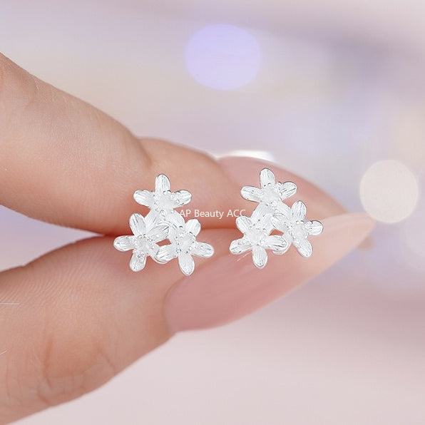 B관 - 999 실버 트리플 플라워 디자인 스터드 귀걸이 [YC9992E_1] 25.11-2