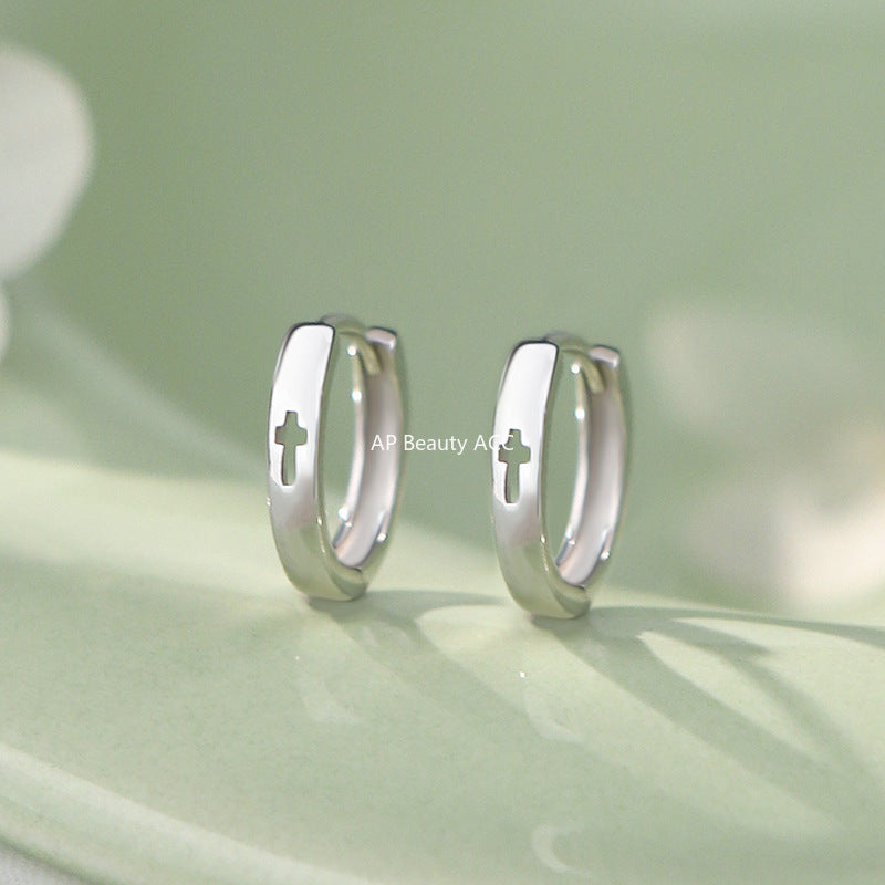 B관 - 925 실버 뚫린 십자가 링 귀걸이 [YC8554E_1] 25.10-1