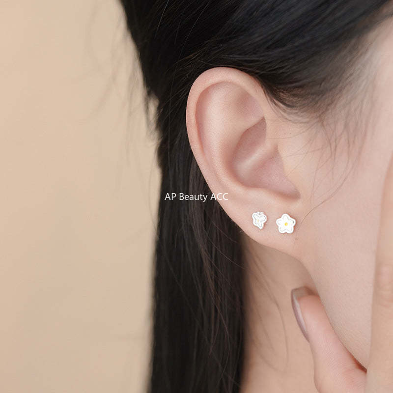 B관 - 언밸런스 나비 플라워 모양 999 실버 귀걸이 [YC4631E_1] 25.11-3