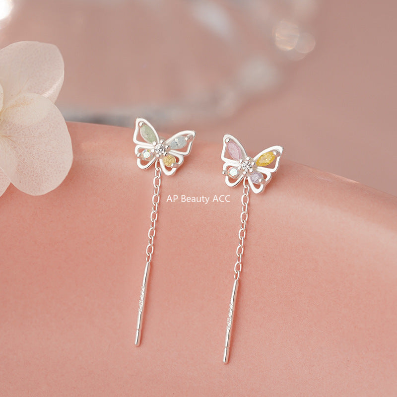 B관 - 999 실버 컬러 큐빅 나비 드롭 체인 귀걸이 [YC6414E] 25.11-2