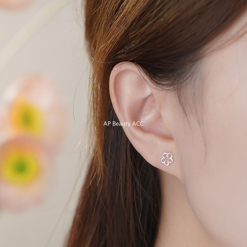 B관 - 999 실버 플라워 라인 스터드 귀걸이 [YC4444E_1] 25.10-2