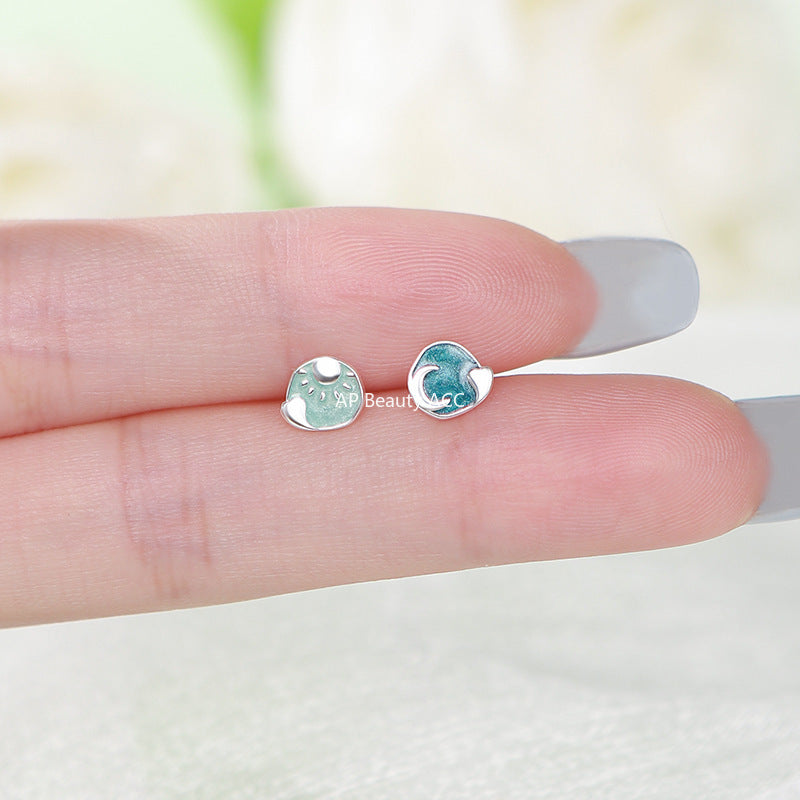 B관 - 999 실버 별 달 디자인 비대칭 귀걸이 [YC6209E_1] 25.10-1