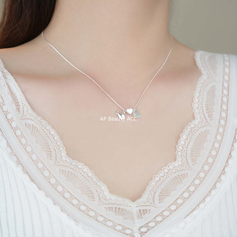 B관 - 925 실버 하트 물방울 물고기 펜던트 목걸이 [YC0450N_1] 25.12-2