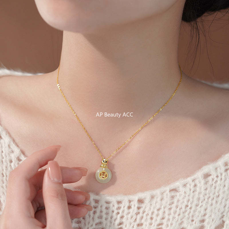 B관 - 925 실버 말 동전 디자인 백옥 목걸이 [YC3569N_1] 25.12-2