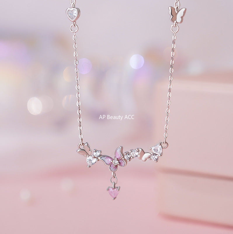 B관 - 999 실버 나비 하트 큐빅 펜던트 목걸이 [YC0028N_1] 25.10-3