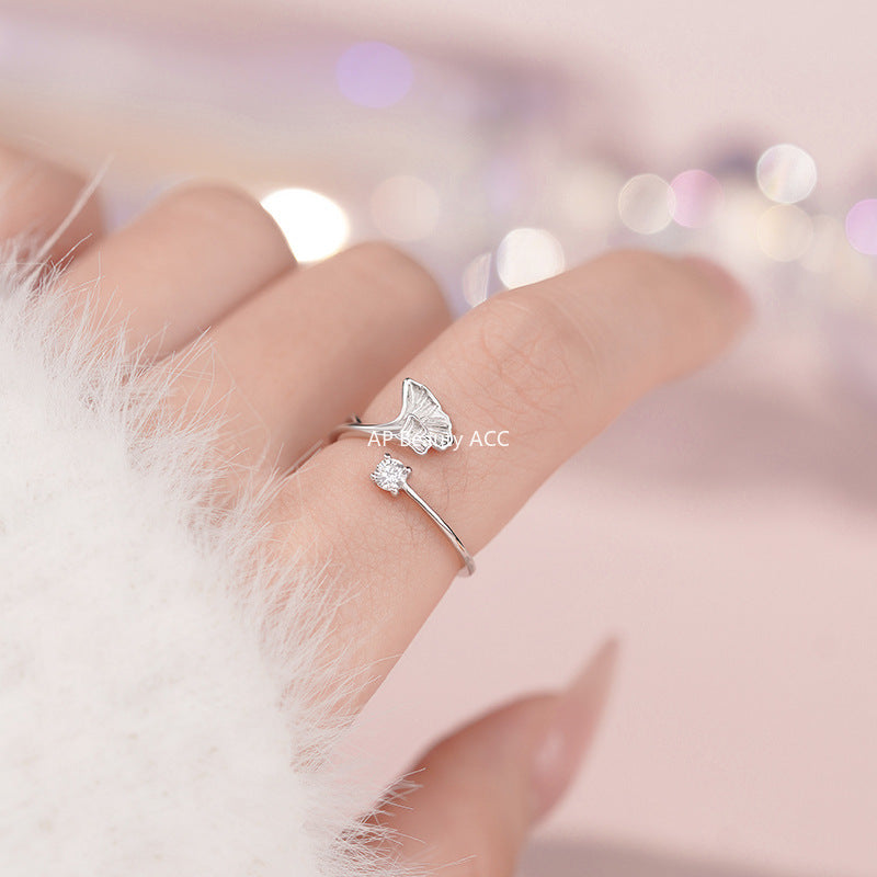 B관 - 925 실버 은행잎 플라워 큐빅 오픈형 반지 [YC3430R_1] 25.11-2
