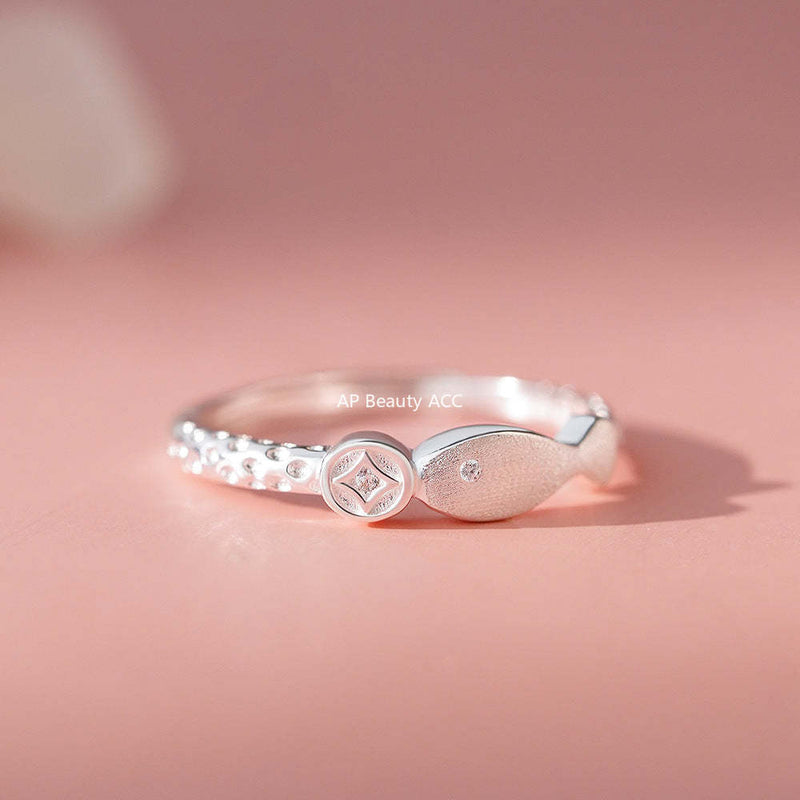 B관 - 999 실버 물고기 코인 큐빅 샌딩 반지 [YC4140R_1] 25.11-4
