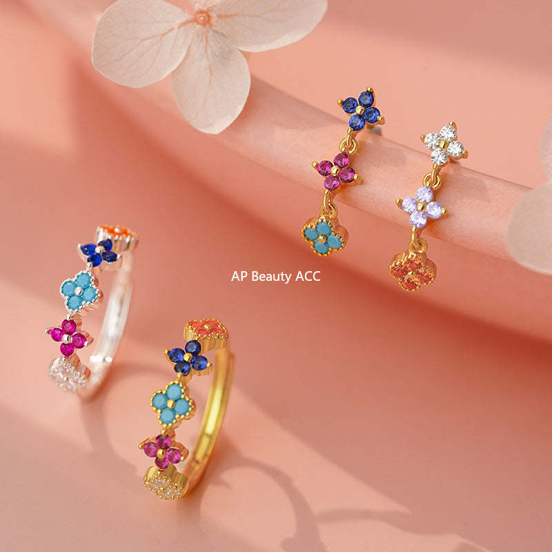 B관 - 925 실버 컬러 클로버 플라워 반지 귀걸이 [YC3164R_1 YC6343E_1] 25.11-2