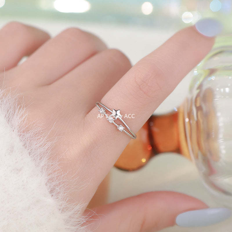 B관 - 999 실버 더블 레이어 별 큐빅 반지 [YC5053R_1] 25.09-4