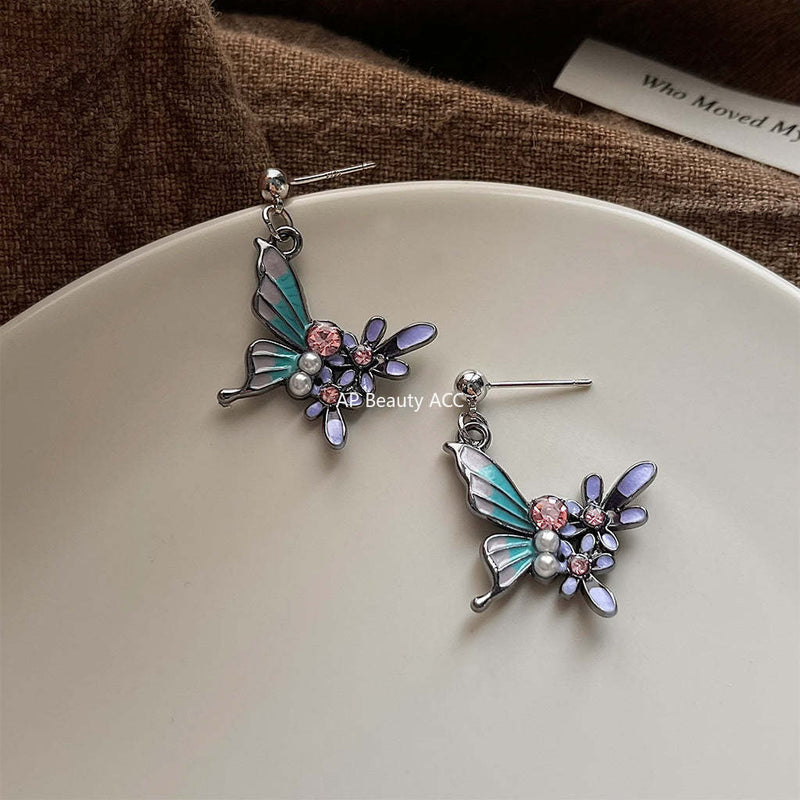 C관 - 에나멜 글레이징 컬러 나비 큐빅 진주 귀걸이 [5773] 25.03-4