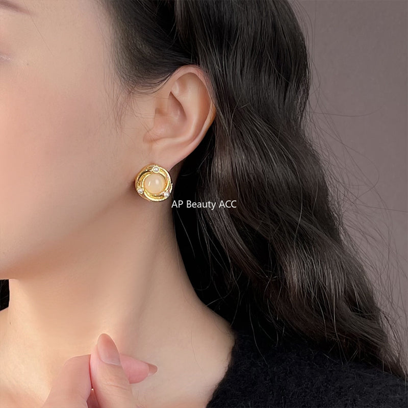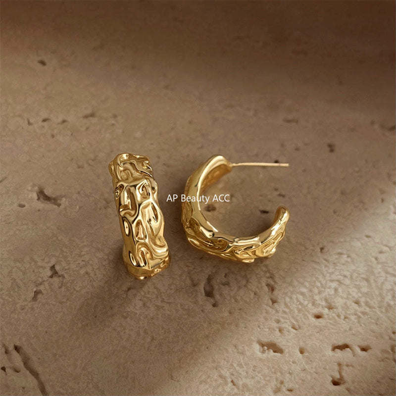 C관 - 텍스처 패턴 반원형 18K 도금 925 은침 귀걸이 [5761] 25.03-4