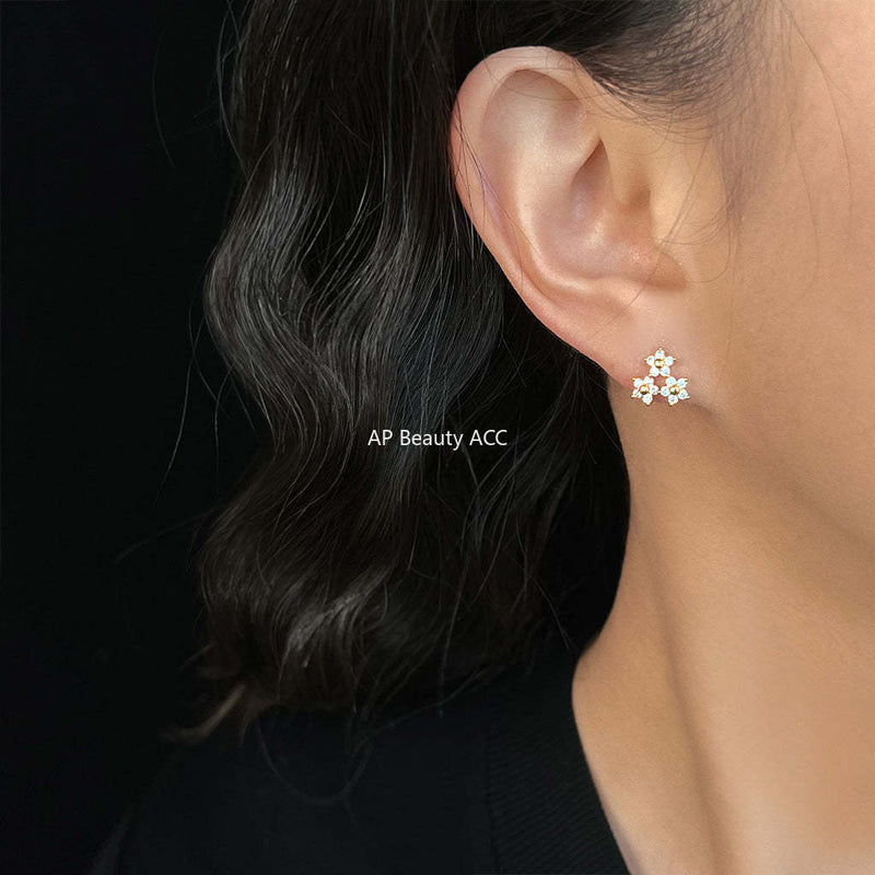 C관 - 미니 플라워 큐빅 18K 도금 귀걸이 [5771] 25.03-4