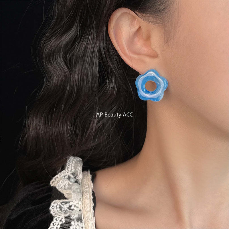 C관 - 블루 아크릴 플라워 925 은침 귀걸이 [5774] 25.03-4